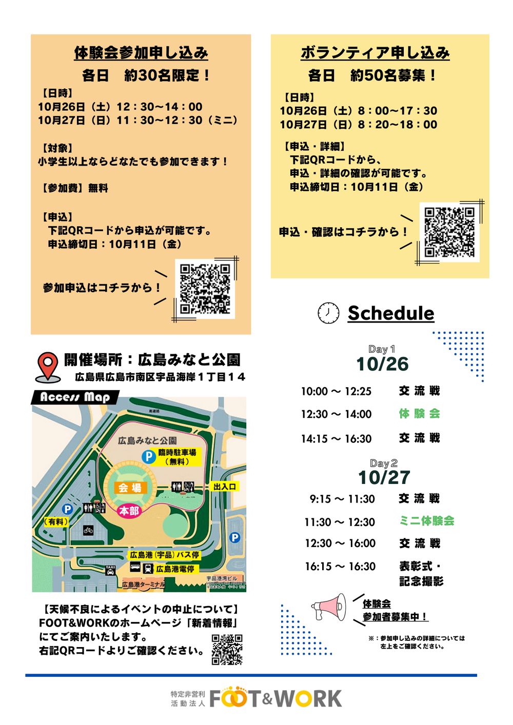 【ボランティア申し込み】各日 約50名募集!〈日 時〉10月26日(土)08:00~17:3010月27日(日)08:20~18:00〈申込み〉申込フォーム 〆10月11日(金)