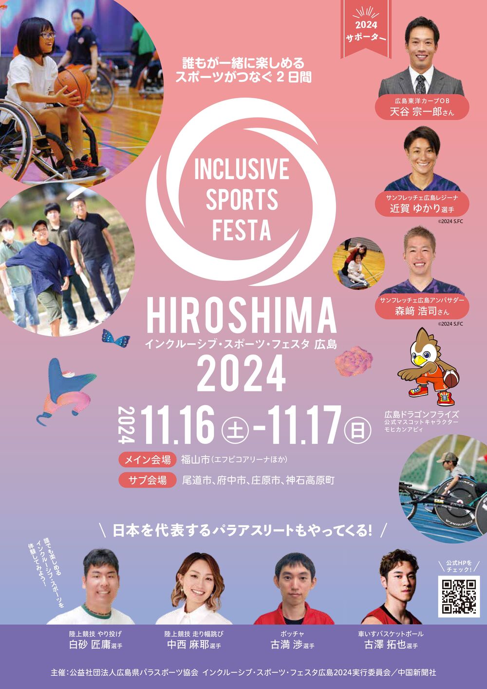 令和6年11月16日(土)~17日(日)に、福山市をメイン会場に、誰もが参画し楽しめる「インクルーシブ・スポーツ・フェスタ広島 2024」を開催しました。