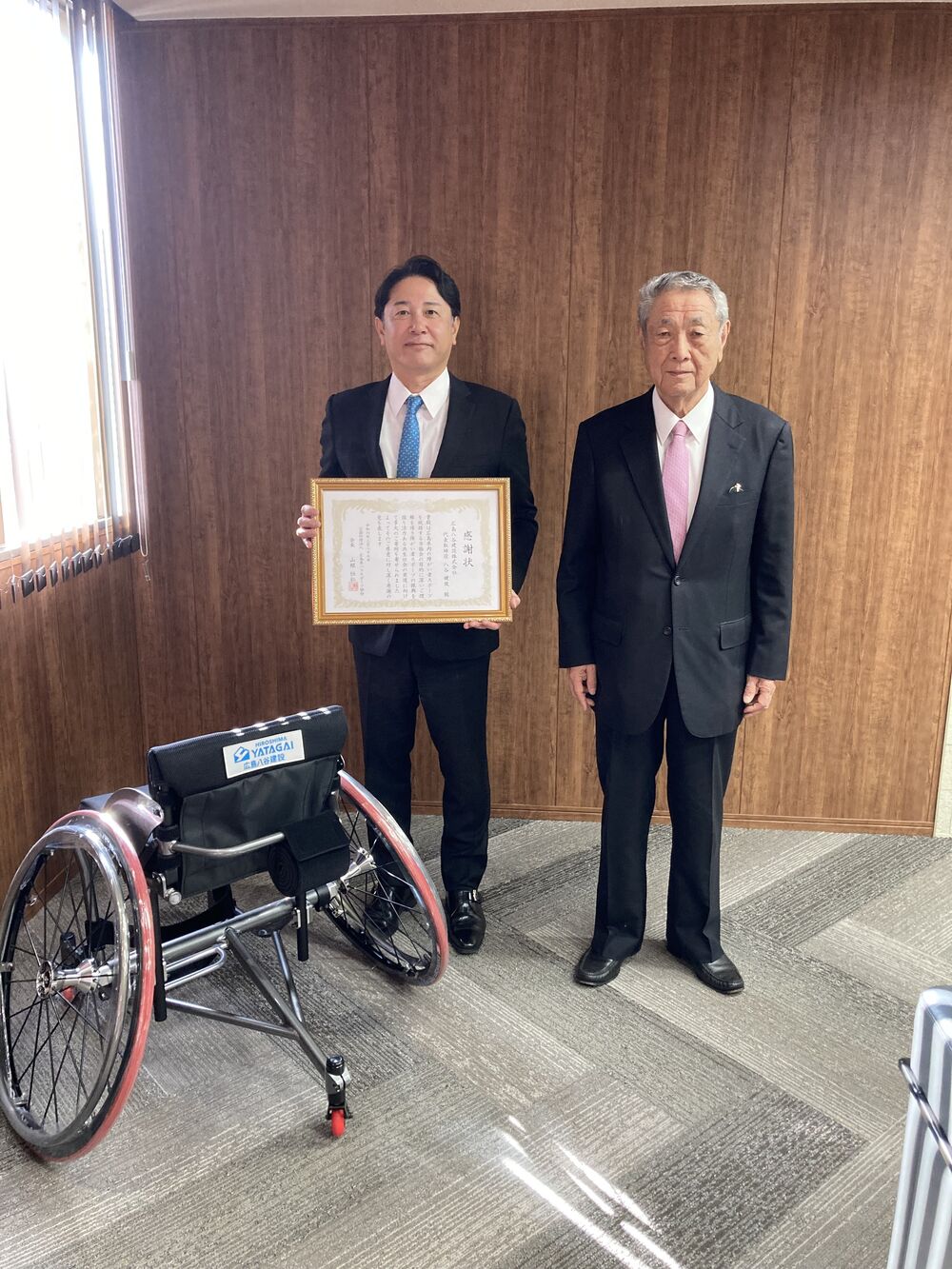 広島八谷建設株式会社様からいただきました多くのご寄付から、競技用車いす(テニス車2台・ソフトボール車4台)を購入させていただいており、