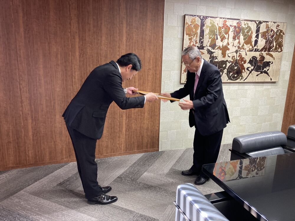 この度、当協会 山根恒弘 会長から、代表取締役社長 八谷 健俊 様に感謝状をお渡しさせていただきました。