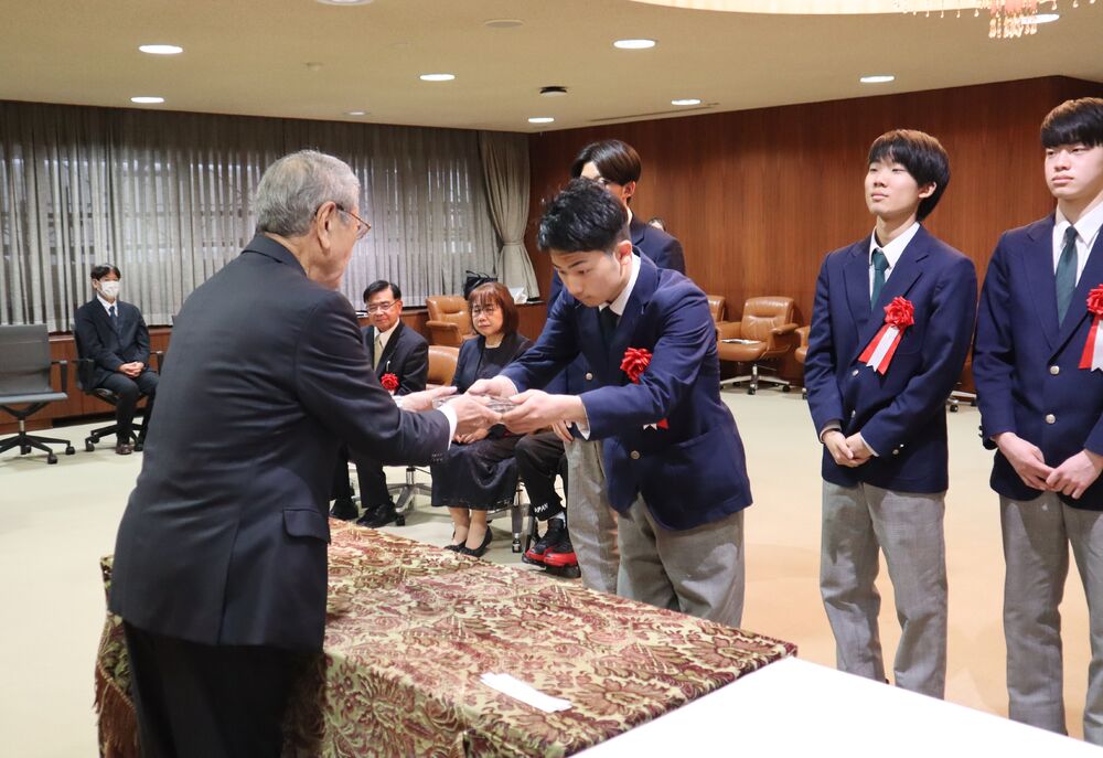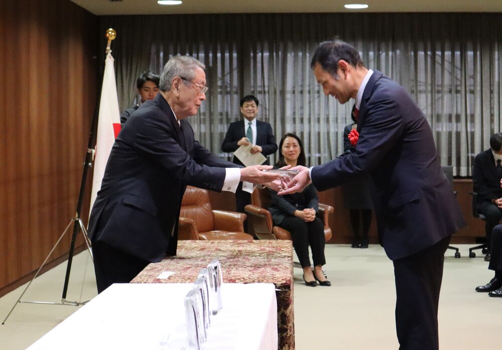 表彰式当日には、パリ2024パラリンピックにおいて素晴らしいご活躍をされた車いすラグビーの長谷川勇基選手や、ブラインドフットボール男子の後藤将起選手をはじめとする受賞者の皆様に対し、当協会の山根会長より表彰盾が授与されました。