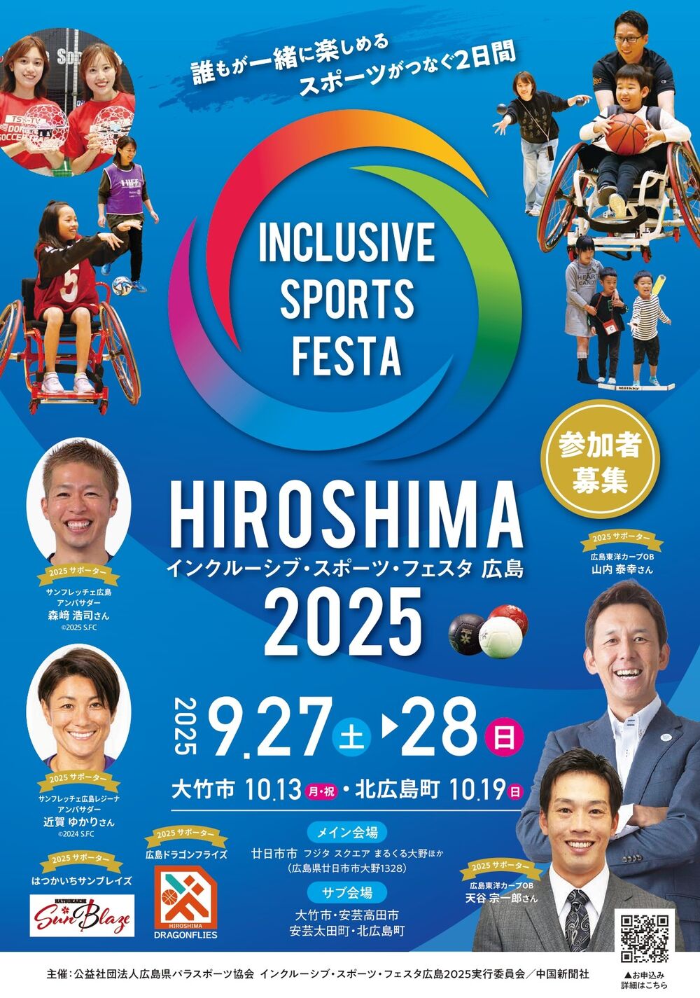 9月27日(土)・28日(日)に廿日市市をメイン会場として開催する「インクルーシブ・スポーツ・フェスタ広島2025」。ご好評につき、各競技体験会の申込受付期間を延長します。