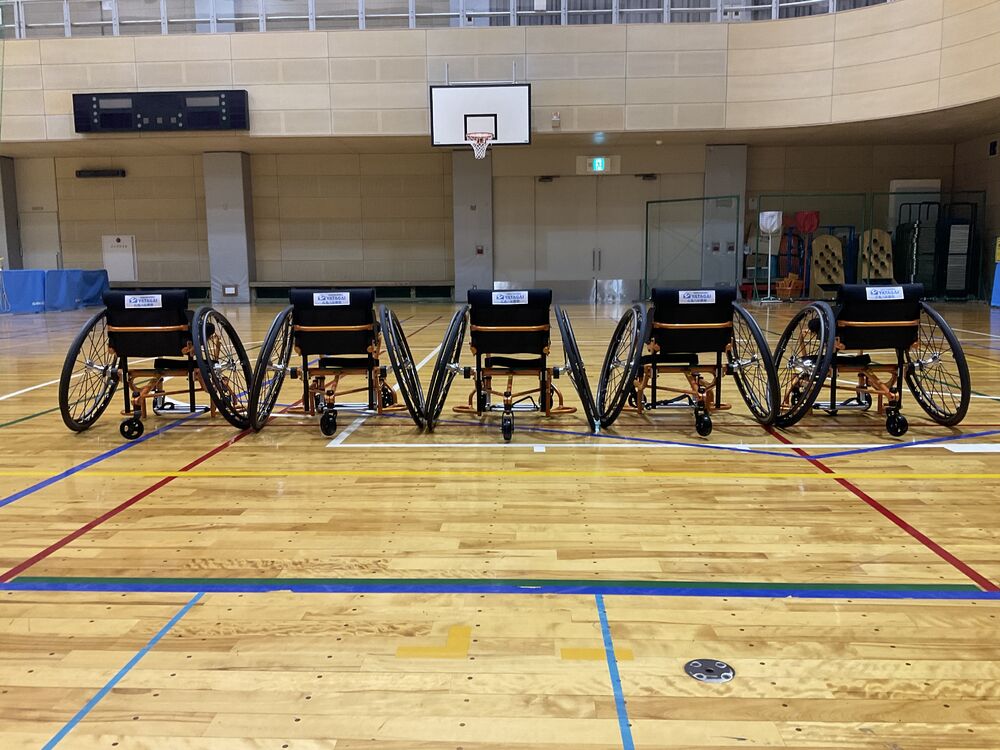 広島八谷建設株式会社様からいただきました多くのご寄付から、競技用車いす(ソフトボール車5台)を購入させていただいており、