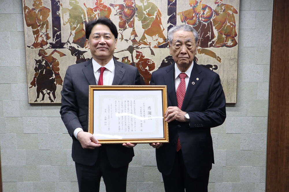 この度、当協会 山根恒弘 会長から、代表取締役 八谷 健俊 様に感謝状をお渡しさせていただきました。