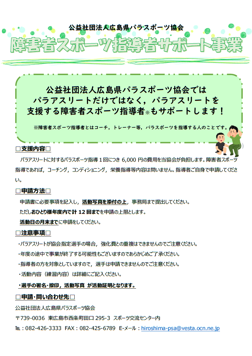 ※当事業は障害者スポーツ指導者に対するものであり、障害者アスリートへの事業ではございません。